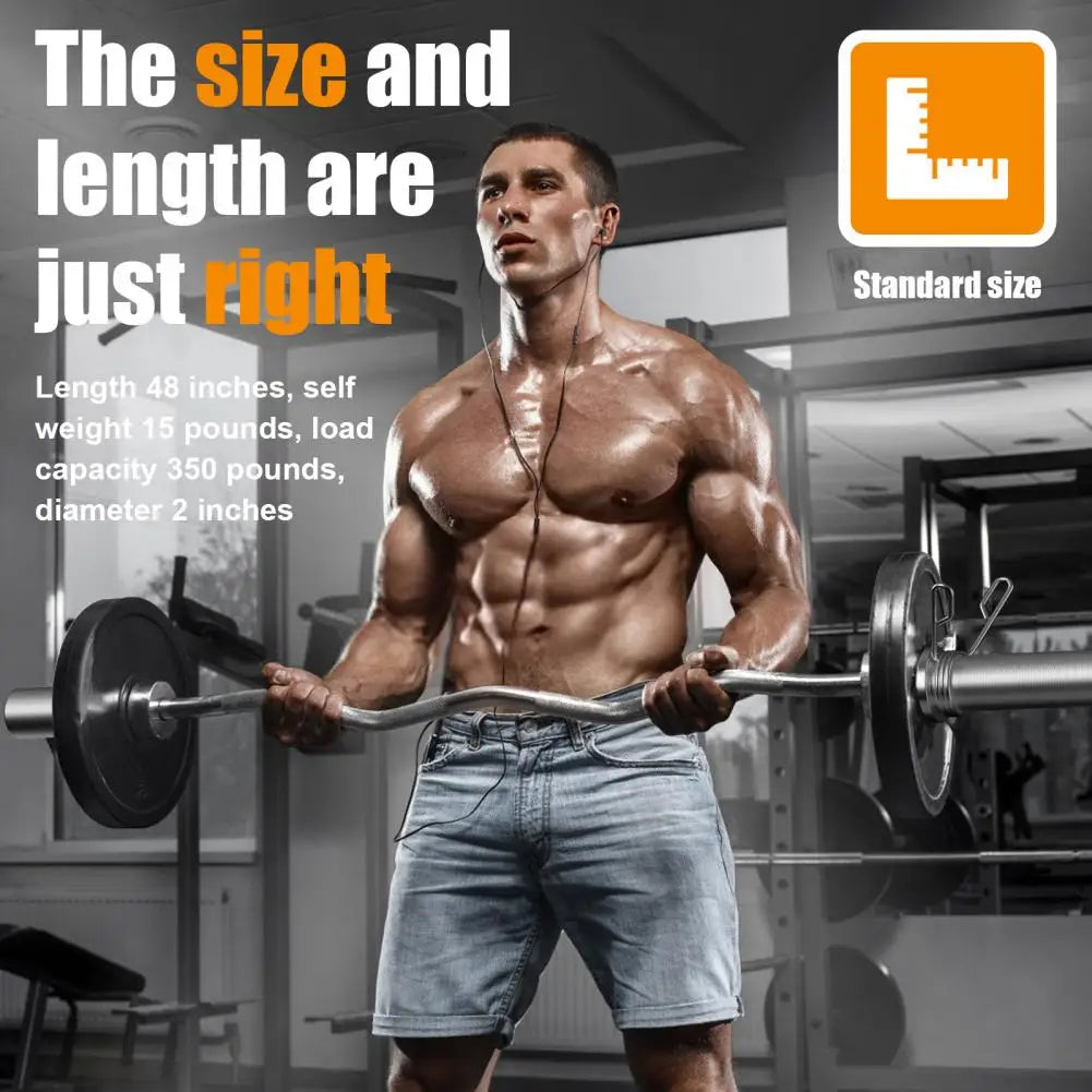 4FT Carbon Steel Barbell Bar, 350 lbs Capacity Curved Weight Bar for Bench Press, Powerlifting, CrossFit & Home Gym Fitness