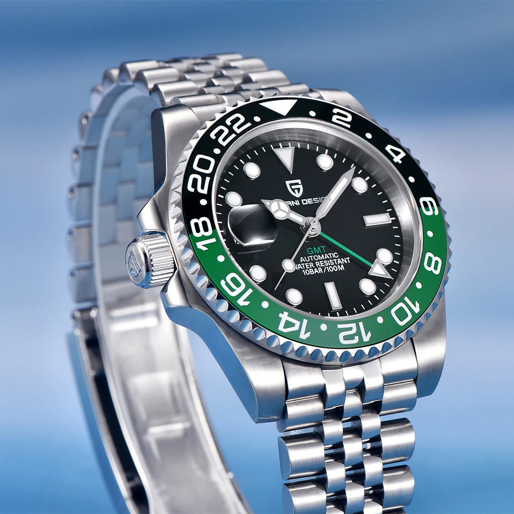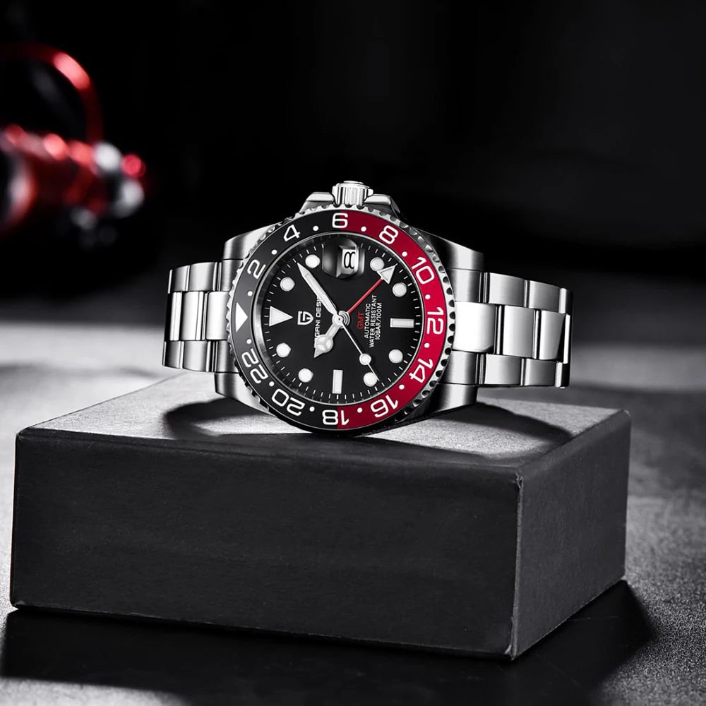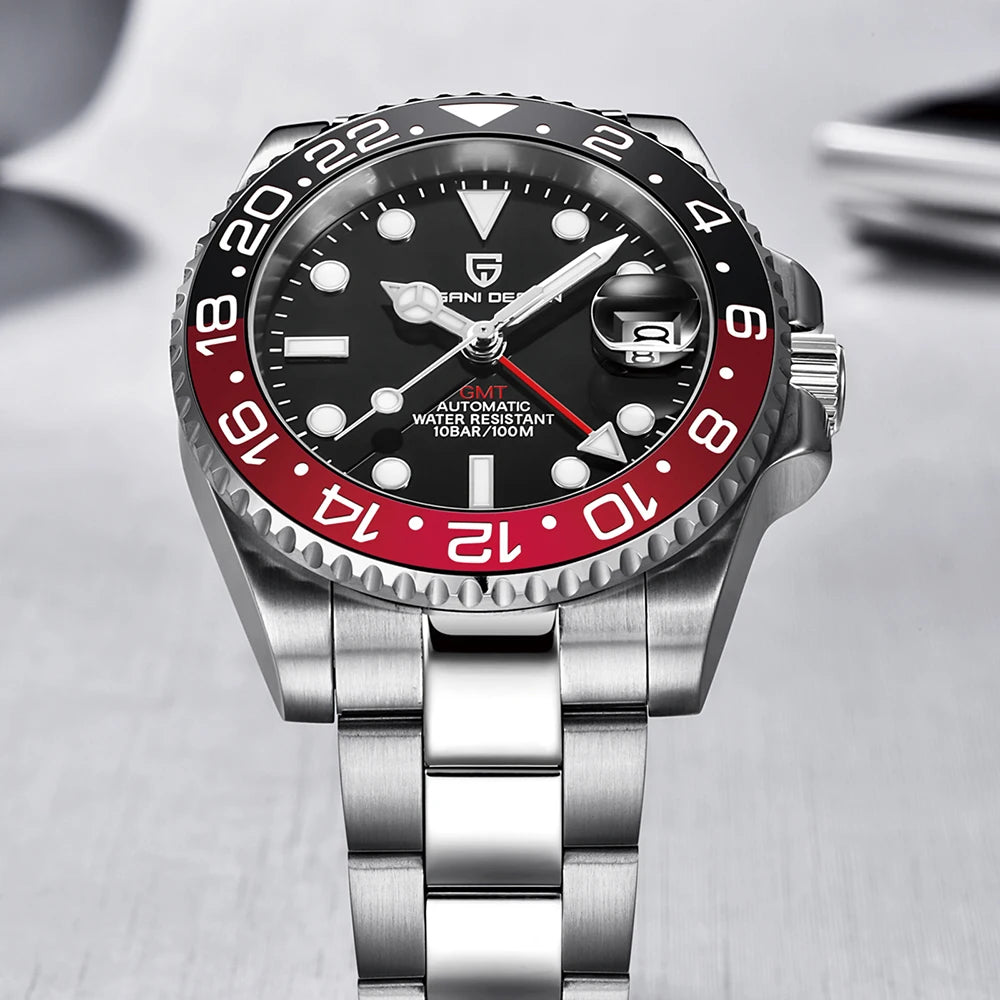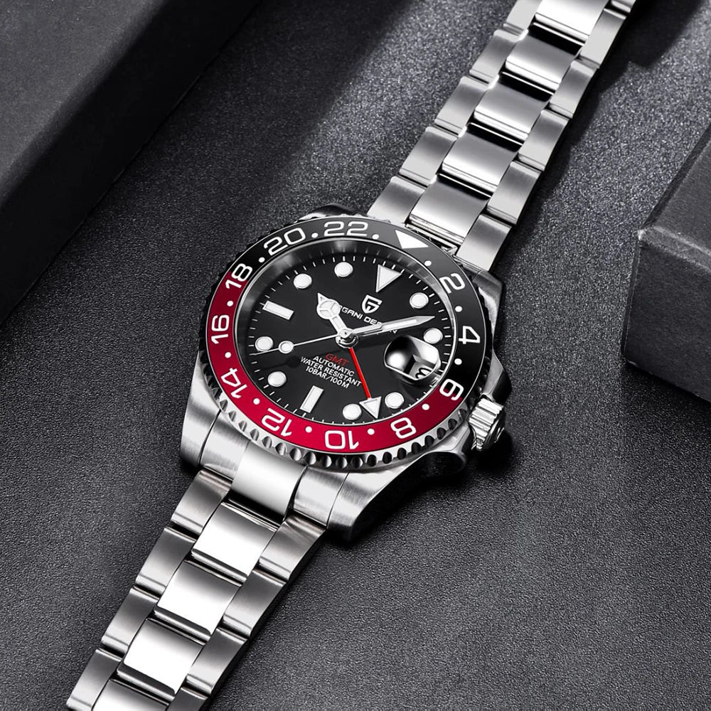 PAGANI DESIGN Business Mechanical Automatic Watch Men's Stainless Steel Waterproof Rotating Ceramic bezel PD-1662 Gift Watch+Box