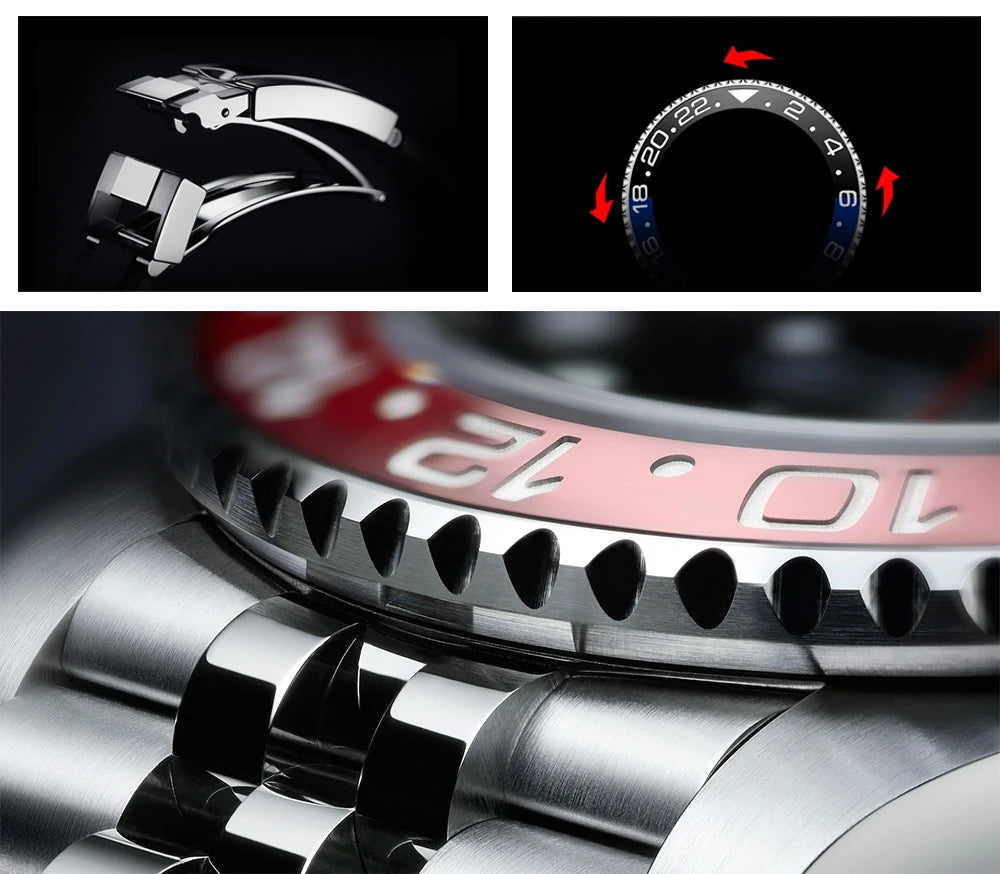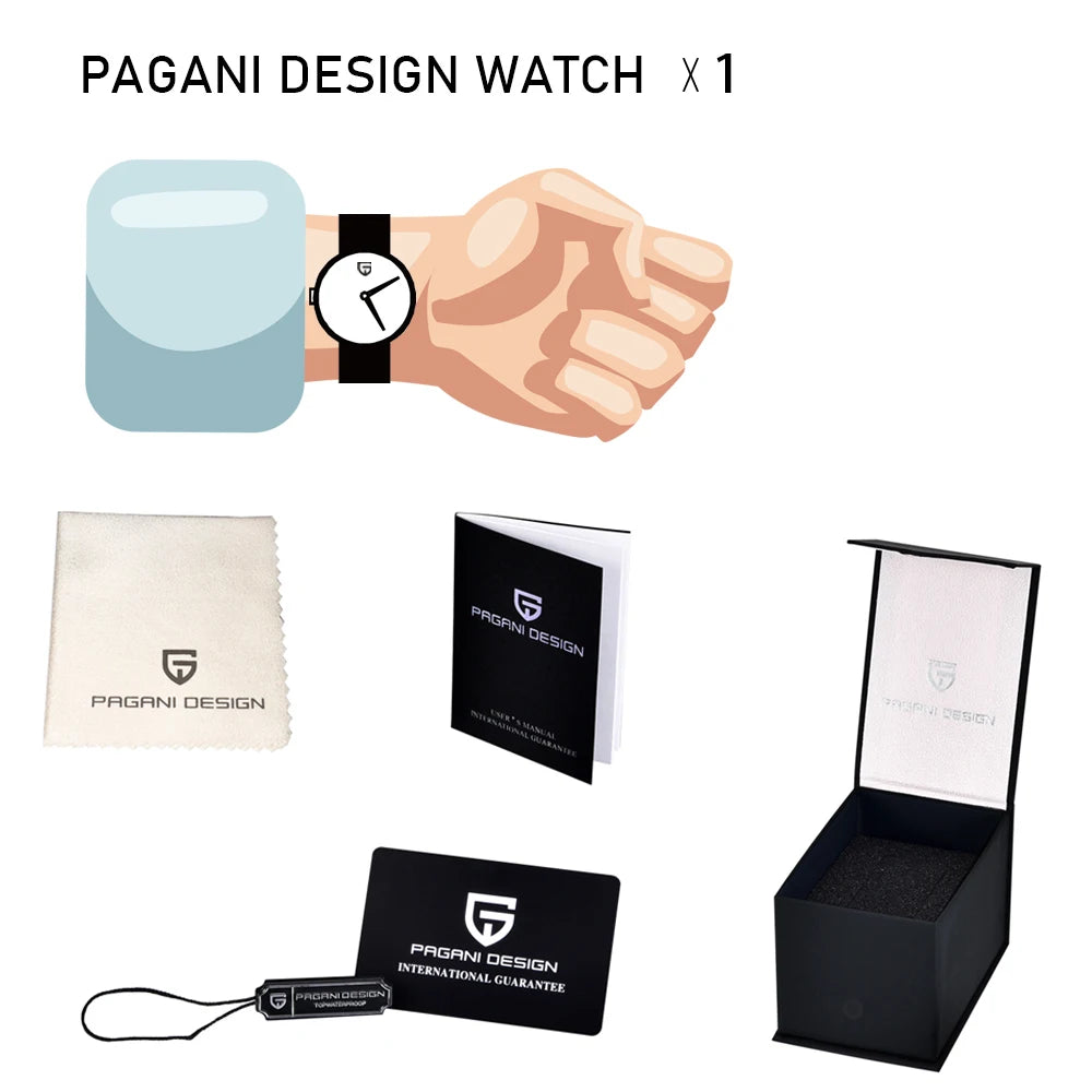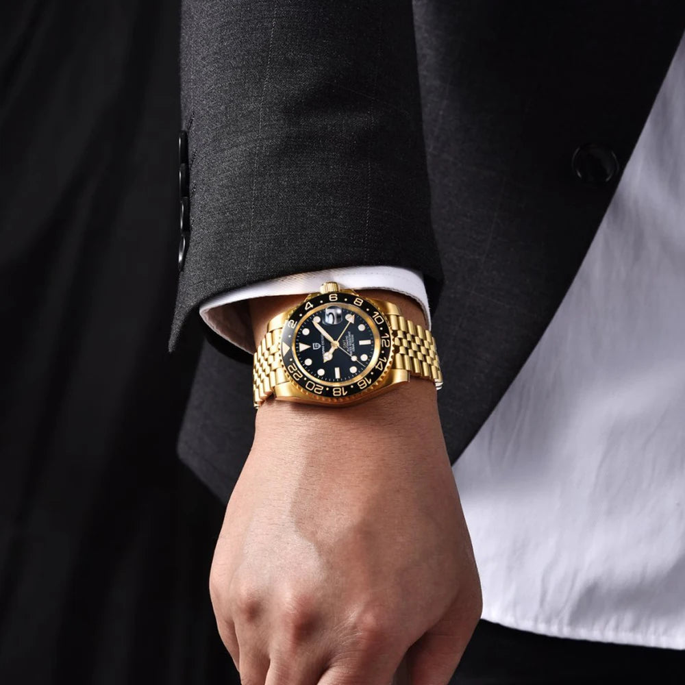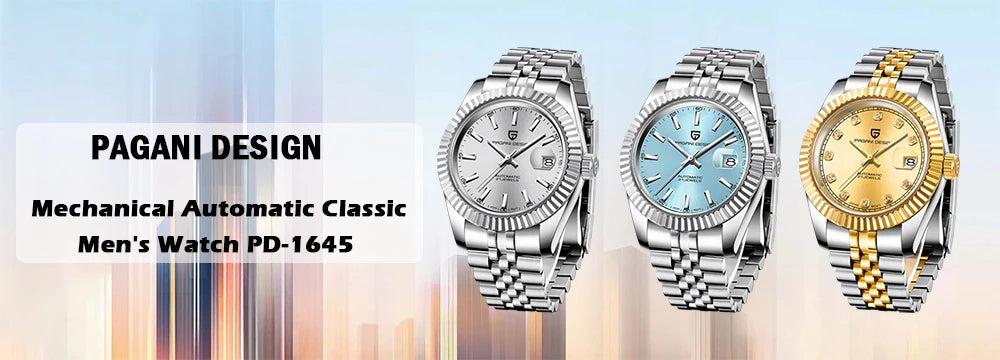 PAGANI DESIGN Business Mechanical Automatic Watch Men's Stainless Steel Waterproof Rotating Ceramic bezel PD-1662 Gift Watch+Box