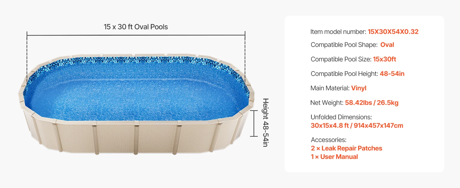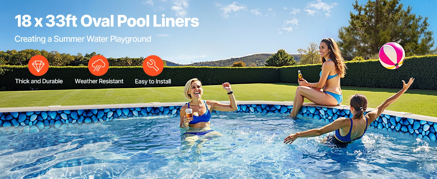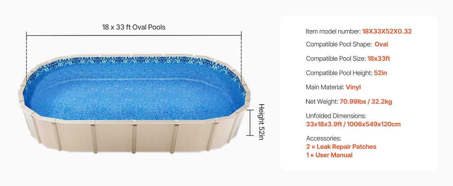 SucceBuy 18-Foot-by-33-Foot Oval Pool Liner for Overlap Above Ground Swimming Pools 48-to-54in Wall Height Standard Gauge Vinyl